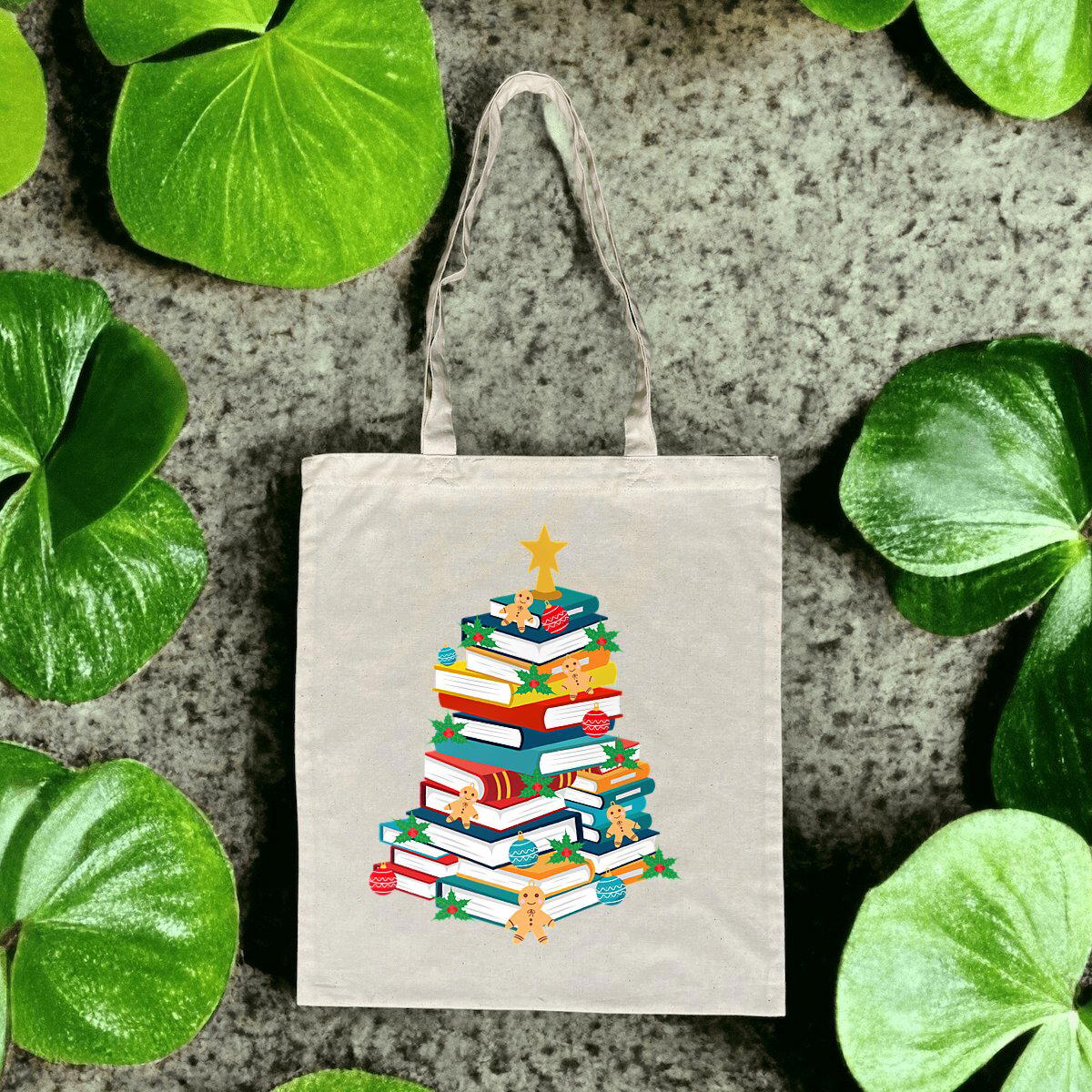 Jolies Fêtes - Totebag de Noël Sapin de Livres